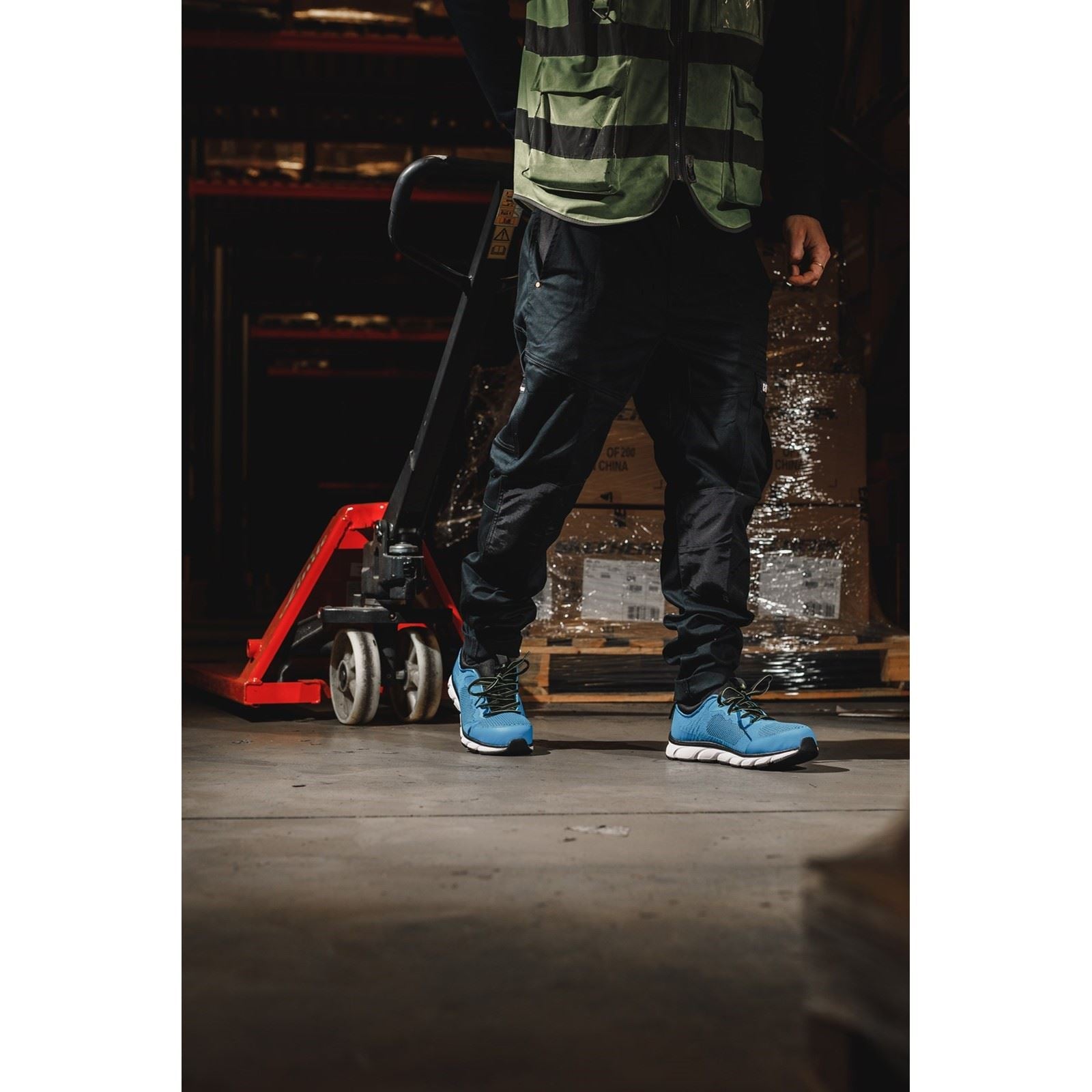 Lightweight sporty safety trainer with athletic breathable moisture wicking mesh upper and flexible traction EVA/Rubber outsole - Non-Leather PU & Mesh Upper - Moisture Wicking Breathable Mesh Lining - 200 Joules Aluminium Toecap