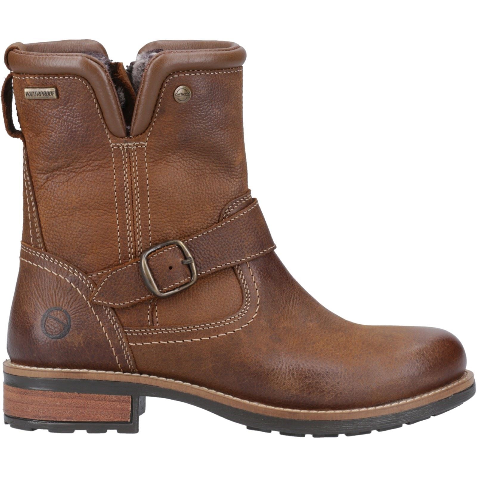 Kinsham is your biker boot with a country classic twist. Featuring waterproof leather uppers to keep your feet dry in the winter weather. With luxury faux fur lining the boot, your feet will be warm all season. With buckle detailing around the ankle. Key Features: Brand: Cotswold Available Shoe Sizes: UK 3/UK 4/UK 5/UK 6/UK 7/UK 8 Colour: Tan Department: Women Style: Bootie Upper Material: Full Grain Leather Customised: No Lining Material: Faux Fur/Waterproof Membrane Outsole Material: TPR Type: Boot Calf Width: Standard Closure: Zip Up Heel Style: Flat