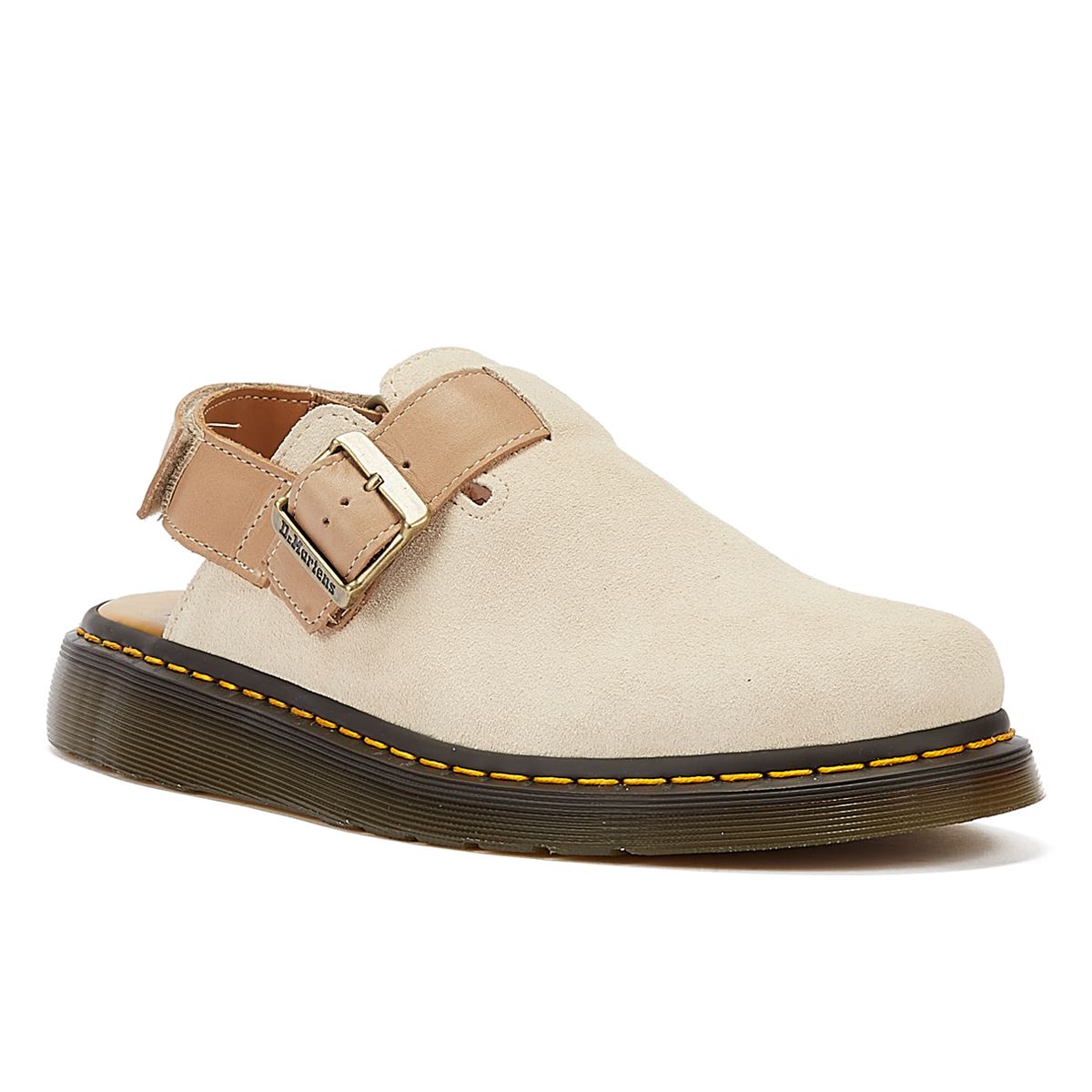 Introducing the Jorge 2. Upgrade your style with our Beige Suede leather mule slingbacks. These slip-on slingbacks feature a convenient buckle closure.
