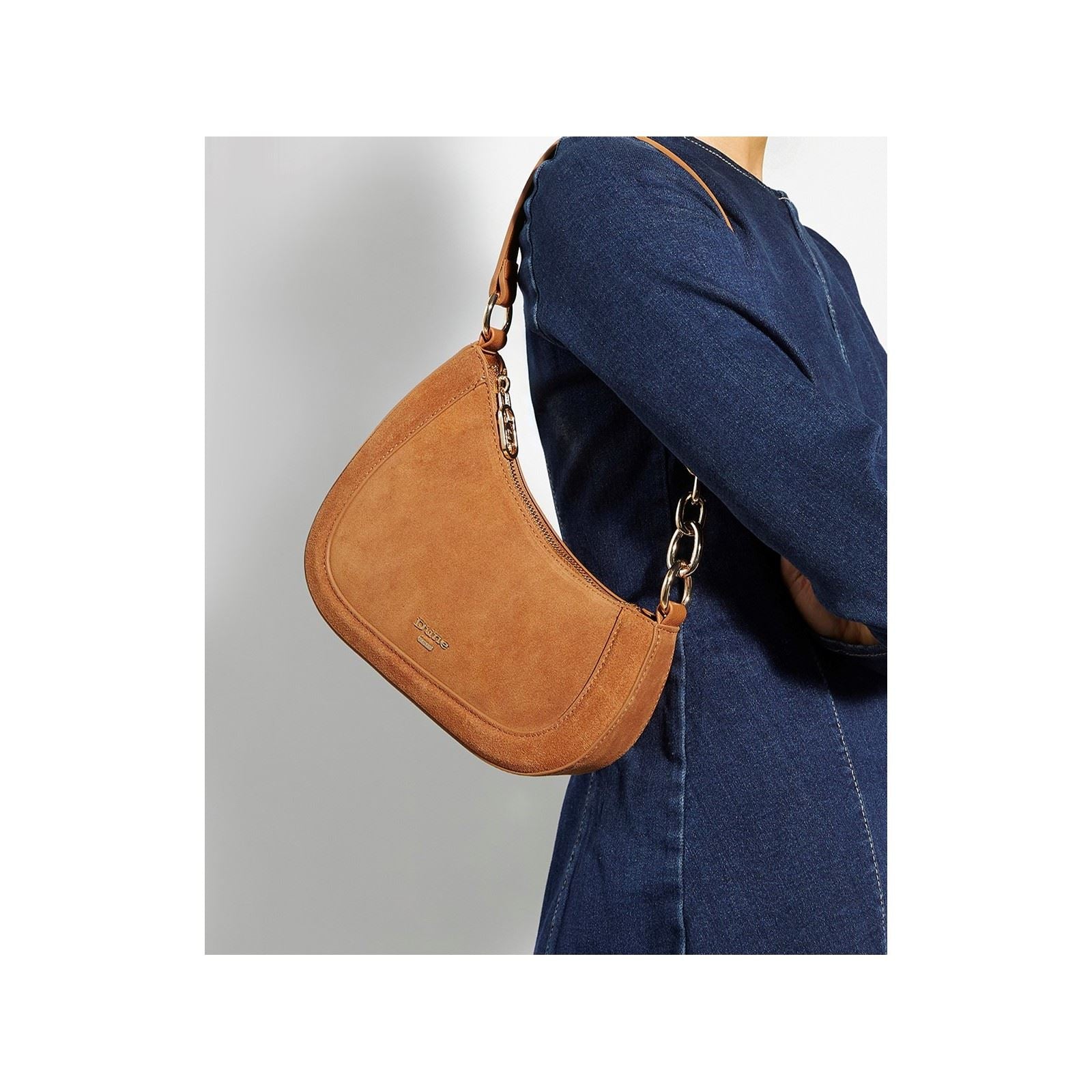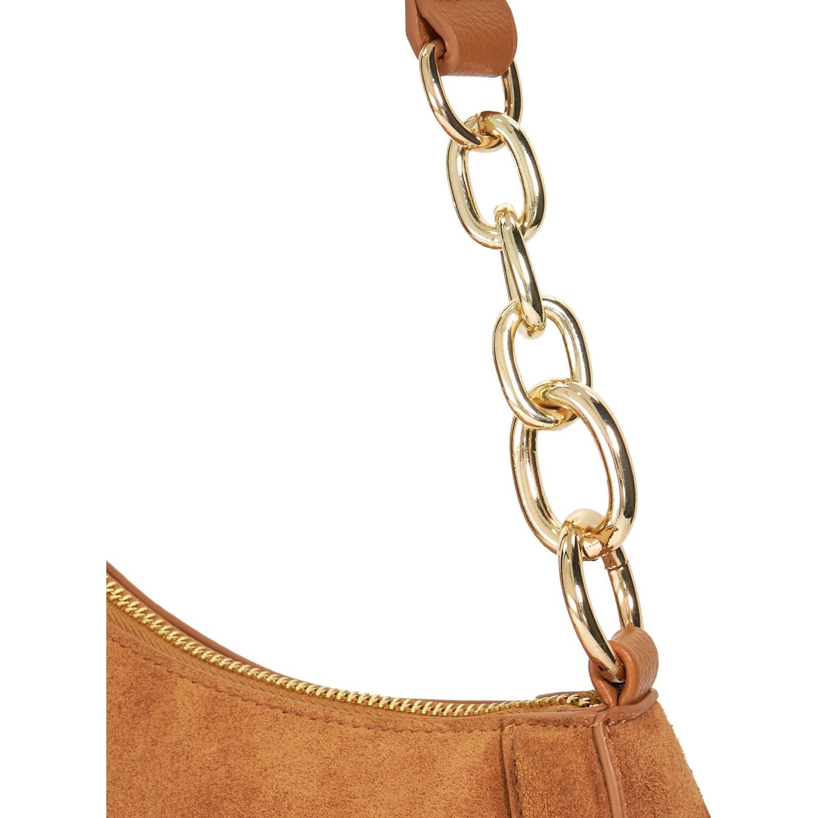 This angular sculpted silhouette has been designed to sit under the arm when worn on the shoulder. Combining comfort and style, the part chain handle, held in placed with ringlets on either side, has been crafted from gold chain links.