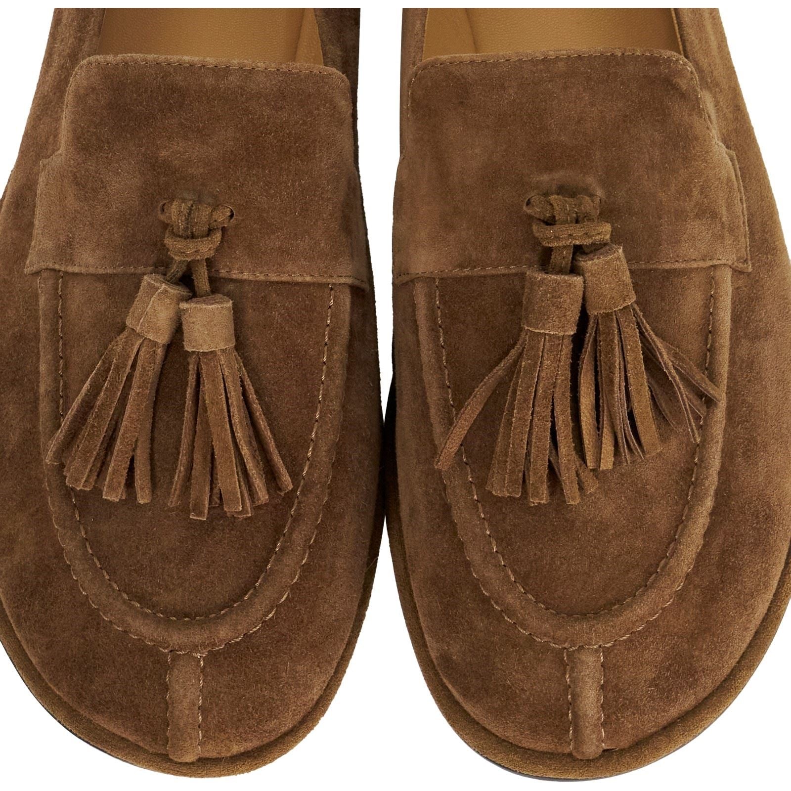 Update your portfolio of casual wear with Grounding. These suede loafers are a classic slip-on design, crafted with a cushioned footbed for all-around comfort, and woven upper detailing. The decorative tassel on the upper completes the aesthetic. Key Features: Brand: Dune Available Shoe Sizes: UK 4/UK 5/UK 6/UK 7/UK 8 Colour: Brown Department: Women Style: Casual Type: Casual Upper Material: Suede Heel Style: Flat Closure: Slip On Country of Manufacture: China Occasion: Casual Outsole Material: Rubber