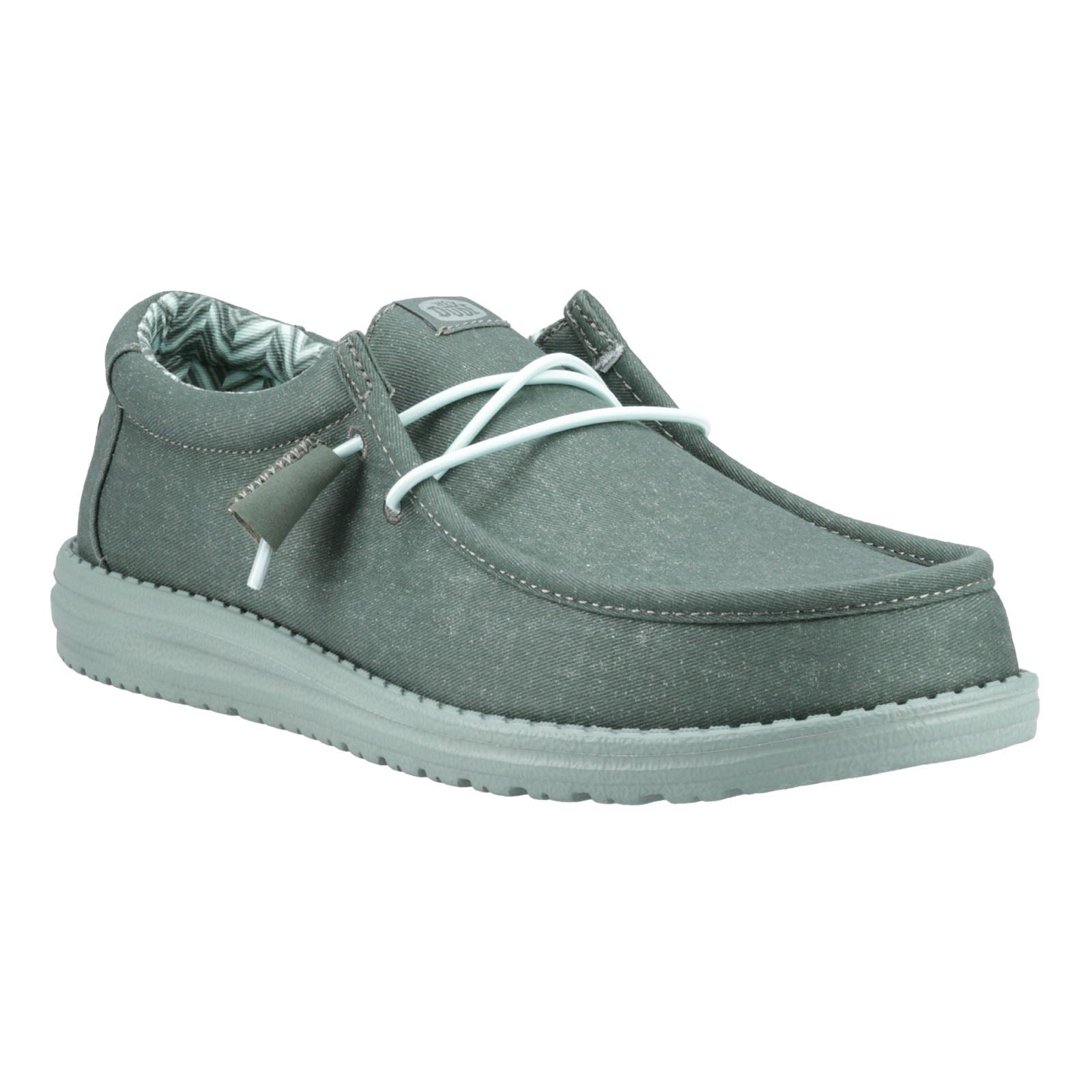 Wardrobe, meet Wally Canvas. Easy-on laces and a cushioned ankle collar come together to create comfort in colours that go with any fit. Key Features: Brand: HEYDUDE Available Shoe Sizes: UK 7/UK 8/UK 9/UK 10/UK 11/UK 12 Colour: Green Department: Men Style: Casual Upper Material: 100% Cotton Closure: Lace Up Customised: No Lining Material: 100% Cotton Occasion: Casual Outsole Material: Rubber Type: Casual Country of Manufacture: China