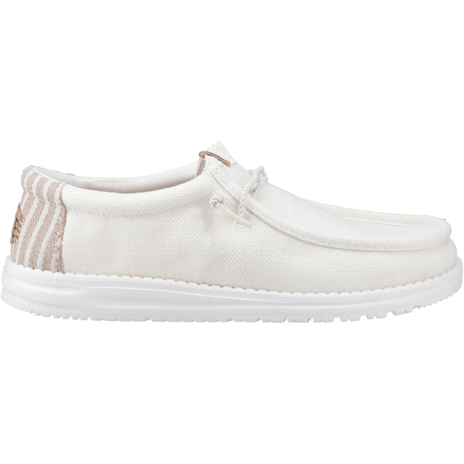 Find your inner luxury with the Wally Resort. These linen blend kicks feature nautical rope laces and comfy cork footbeds, so you can relax in style wherever your travels take you. Easy-on, light on your feet, they're the perfect escape from reality Key Features: Brand: HEYDUDE Available Shoe Sizes: UK 7/UK 8/UK 9/UK 10/UK 11/UK 12 Colour: White Department: Men Style: Casual Upper Material: Polyester/Cotton Closure: Elastic laces Customised: No Lining Material: Cotton Occasion: Casual Outsole Material: EVA Type: Casual Country of Manufacture: India