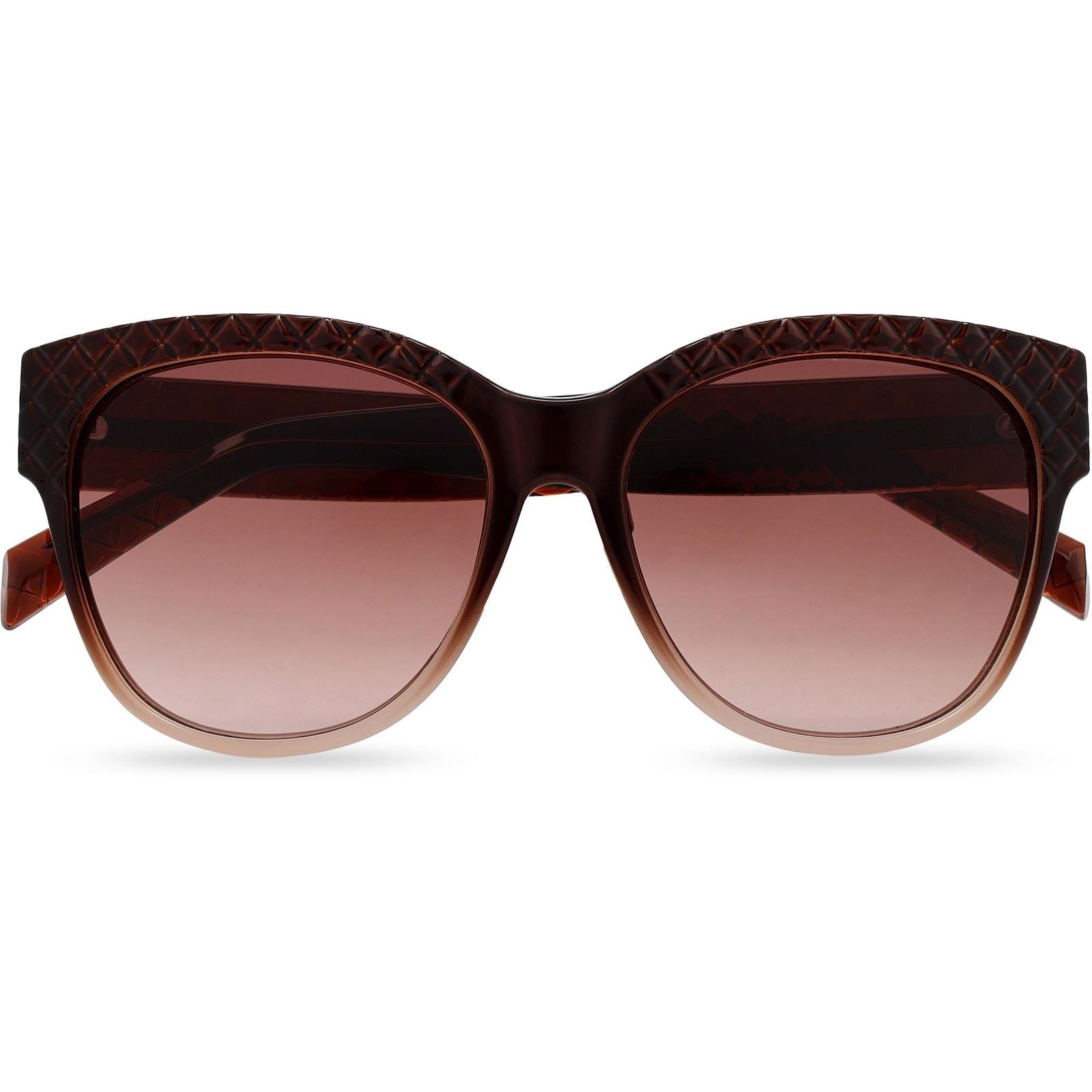These Karen Millen classic sunglasses will elevate any outfit. Shown here in a brown graduated finish with quilted temples, these sunglasses also feature gold metal branded plaques and warm brown graduated lenses.