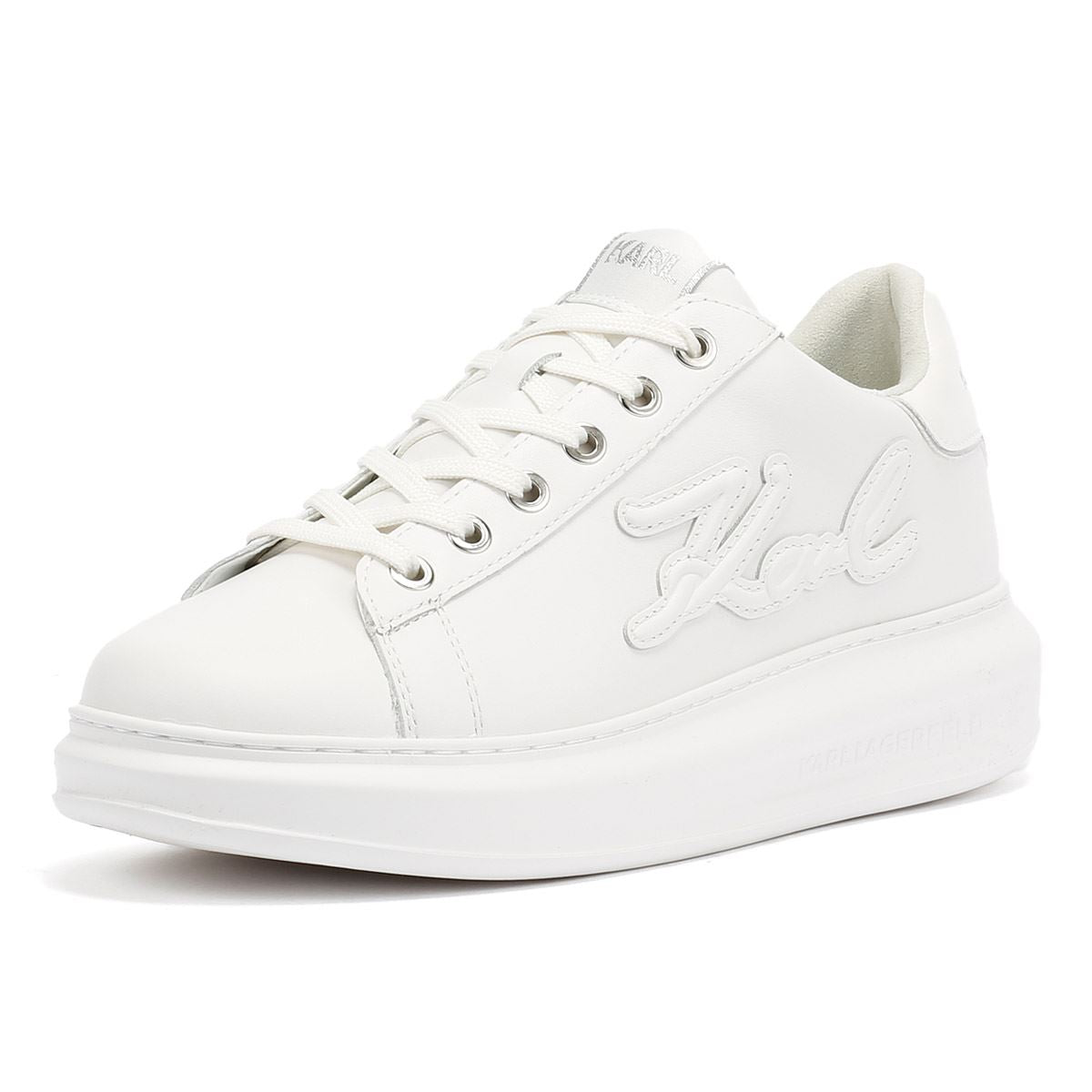 Premium trainers with a smooth, supple leather upper and embossed Karl Signature logo on the side. Lightweight EVA sole offers enhanced comfort and flexibility.