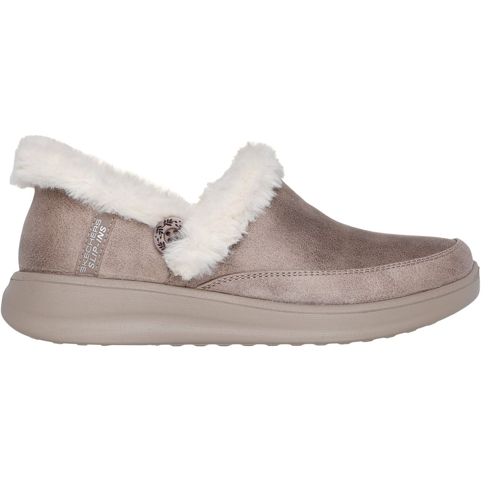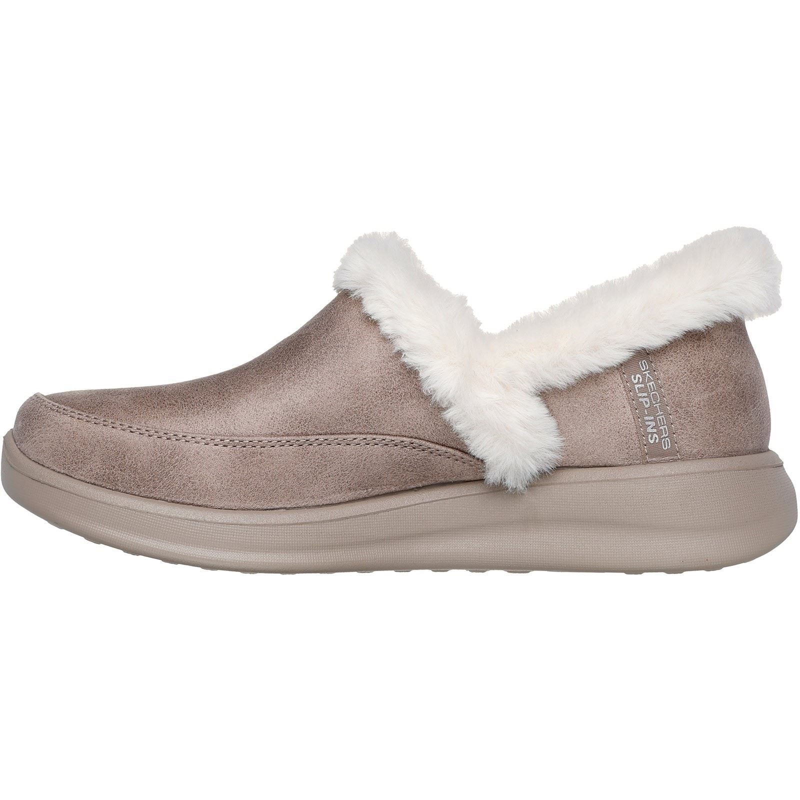 Cuddle up in comfort with Skechers Hands Free Slip-ins: Cozy Escape. This casual slipper features a 3M Scotchgard treated vegan leather upper with faux-fur trim, and a cushioned Skechers Memory Foam footbed. Key Features: Brand: Skechers Available Shoe Sizes: UK 3/UK 4/UK 5/UK 6/UK 7/UK 8 Colour: Taupe Department: Women Style: Slip On Upper Material: Textile Customised: No Outsole Material: Rubber Type: Slipper Closure: Slip On Country of Manufacture: China Occasion: Casual