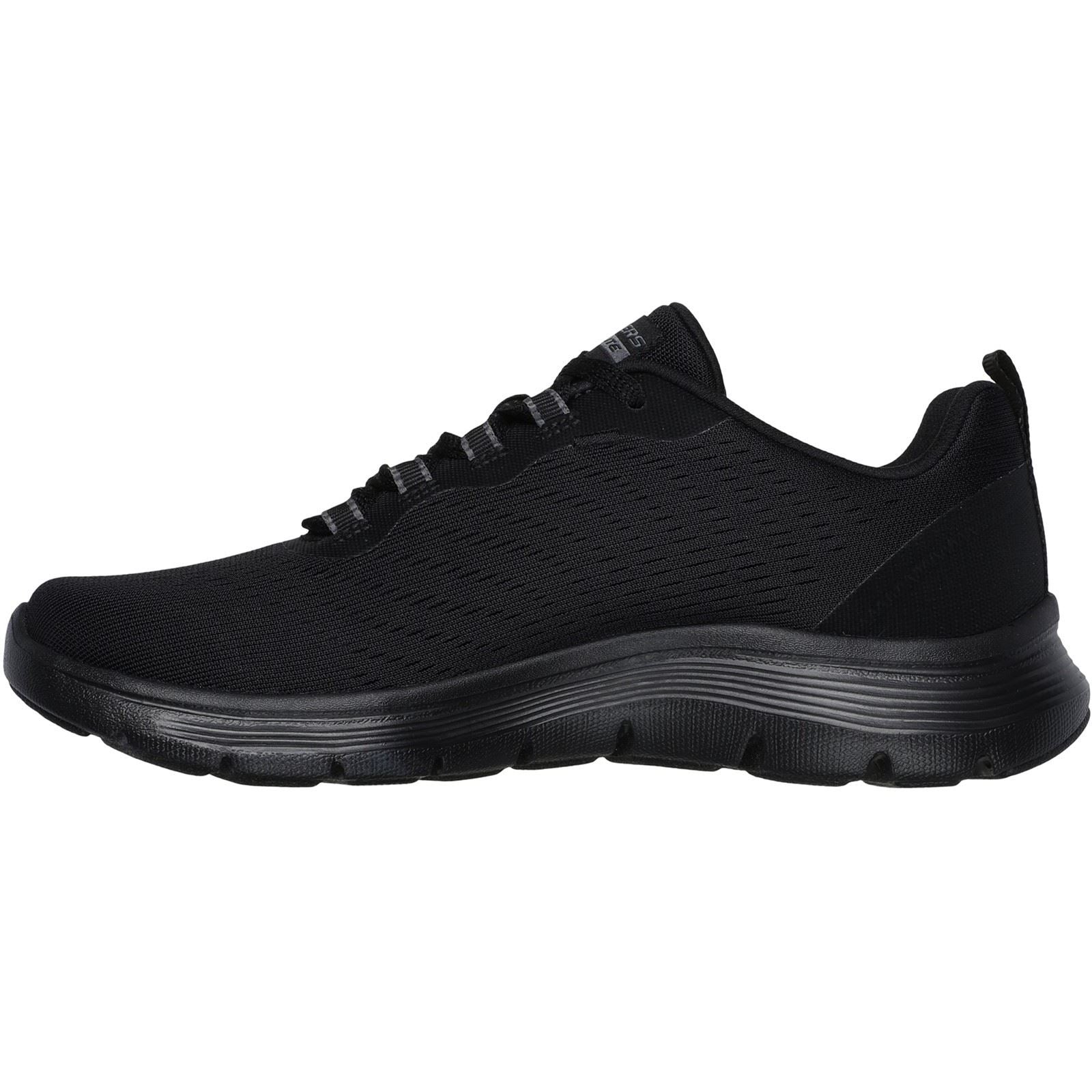 Get a new perspective on flexible sporty style and comfort with Skechers Flex Appeal 5.0. This vegan lace-up features an engineered mesh upper with a cushioned Skechers Air-Cooled Memory Foam insole. Key Features: Brand: Skechers Available Shoe Sizes: UK 3/UK 4/UK 5/UK 6/UK 7/UK 8 Colour: Black Department: Women Customised: No Release Year: Style: Sneaker Type: Trainer Upper Material: Textile Closure: Lace Up Country of Manufacture: China Lining Material: Polyester Occasion: Activewear Outsole Material: EVA