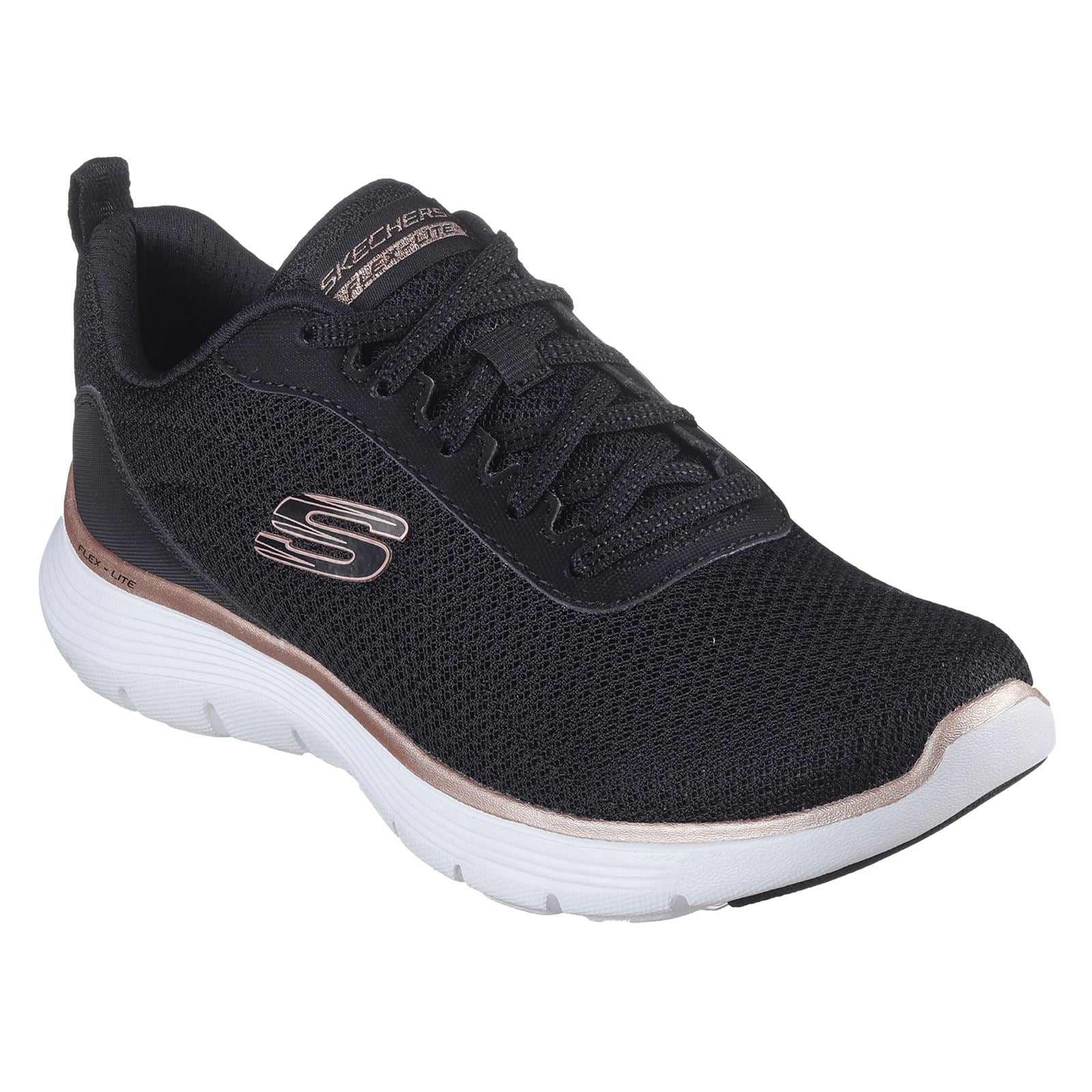 Get a new perspective on flexible sporty style and comfort with Skechers Flex Appeal 5.0. This lace-up features an engineered mesh upper with a cushioned Skechers Air-Cooled Memory Foam insole.