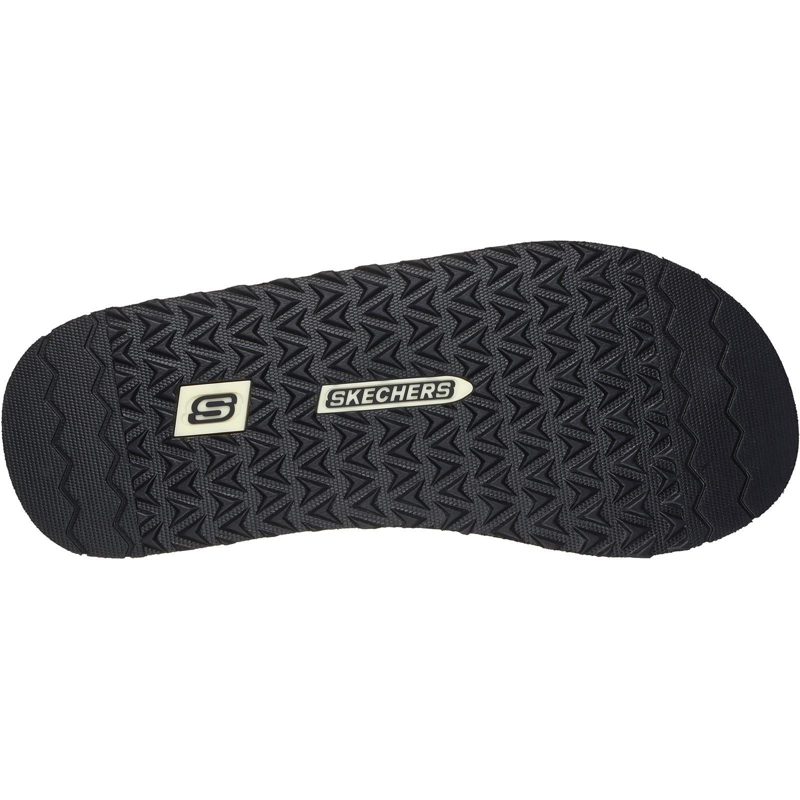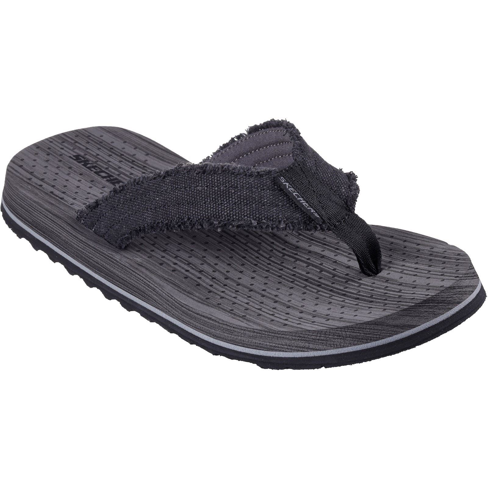 Bring on the sand, surf, and sun in Skechers Patino - Marlee. This casual 3-point thong sandal features a frayed canvas upper with a faux woodgrain and sports stripe detailed midsole. - Cushioned comfort footbed - Frayed canvas upper - 3-point casual thong sandal