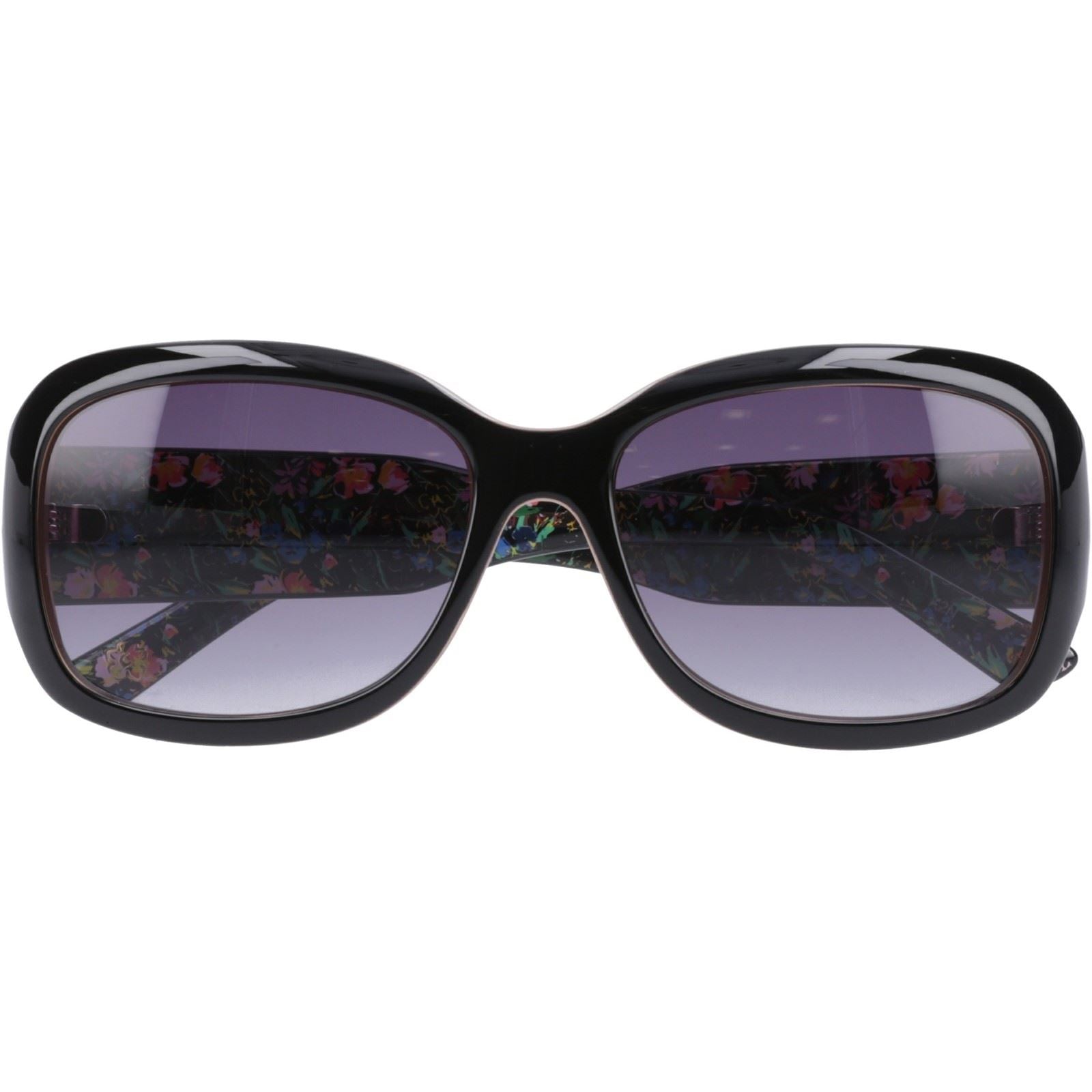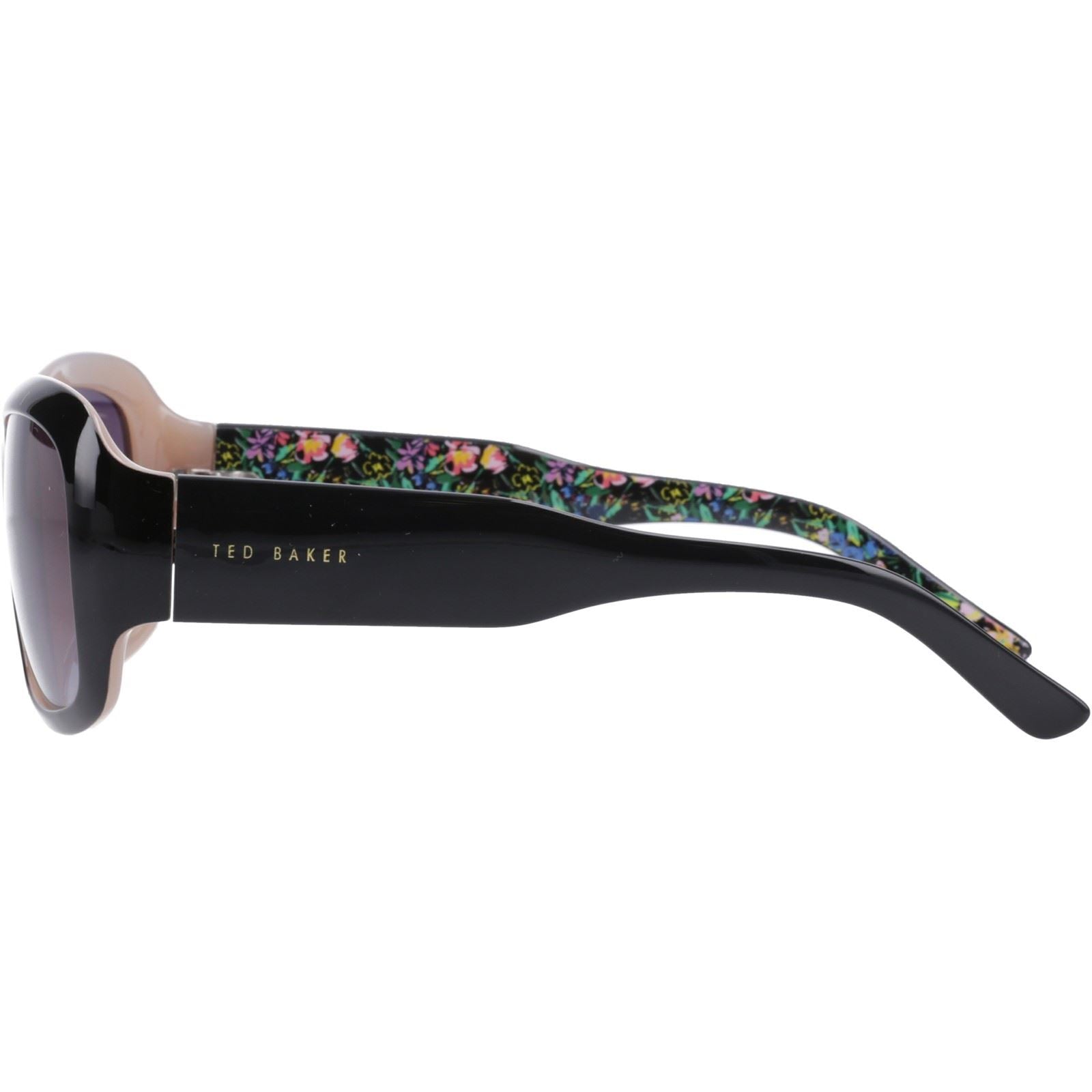 These rectangular sunglasses from Ted Baker are slightly wrapped with deep temples giving you great all-round coverage. Shown here in classic black, backed with pale pink, the inner temples feature a multicoloured floral print exclusive to Ted Baker.