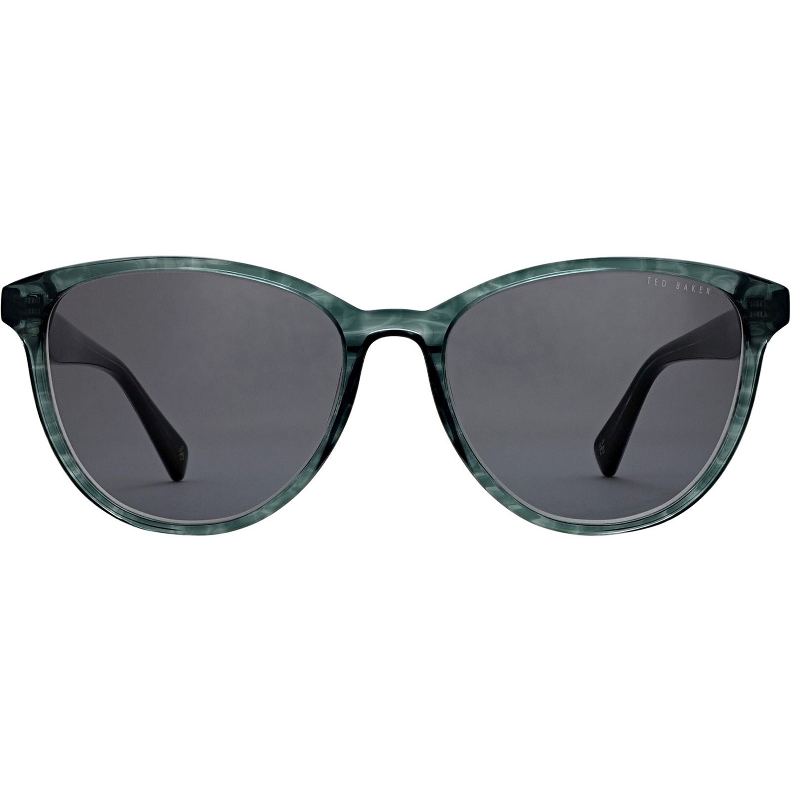 Ted Baker brings you these retro rounded sunglasses. The perfect easy to wear frame, shown here in a feminine soft green horn, with an exclusive Ted floral print on the temple, complementing the 3D metal bow
